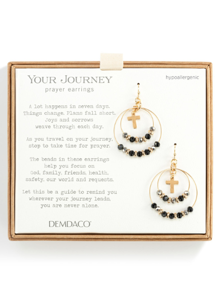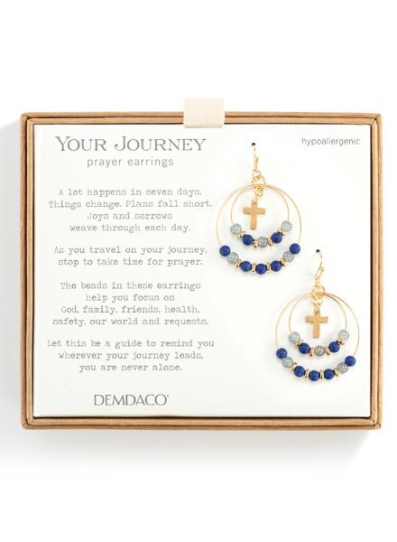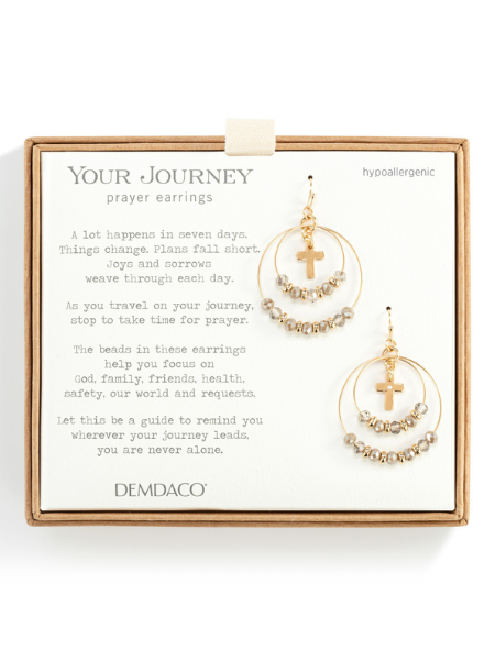 The Beaded Prayer Earrings were made for honoring our lessons learned, lives touched and memories made, while inspiring confidence, courage and strength for all the big and small moments yet to come. The earrings are presented in a sturdy cardboard box with a printed sentiment: A lot happens in seven days. Things change. Plans fall short. Joys and sorrows weave through each day. As you travel on your journey, stop to take time for prayer. The beads in these earrings help you focus on God, family, friends, health, safety, our world and requests. Let this be a guide to remind you wherever your journey leads, you are never alone.