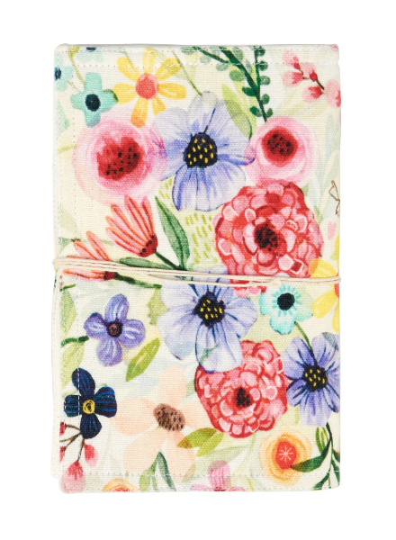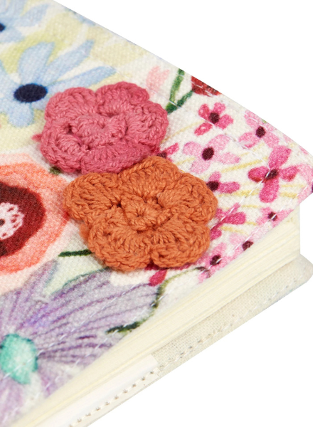 A high-quality journal displaying vibrant hand illustrated floral bouquets on a textured fabric cover with knit flower accents. Features 48 unlined pages to pen anything desired. Our Floral Bouquet journal includes a wrap-around string tie closure to keep secure. A stylish and functional gift perfect for any home office or desk.