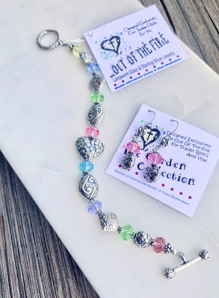 Beautiful Austrian crystals in pretty pastel colors, perfect for the spring and summer. Paired with Bali Sterling Silver beads with floral details etched within. Made by Rick himself as part of his new "Garden Collection." Earrings sold separately.