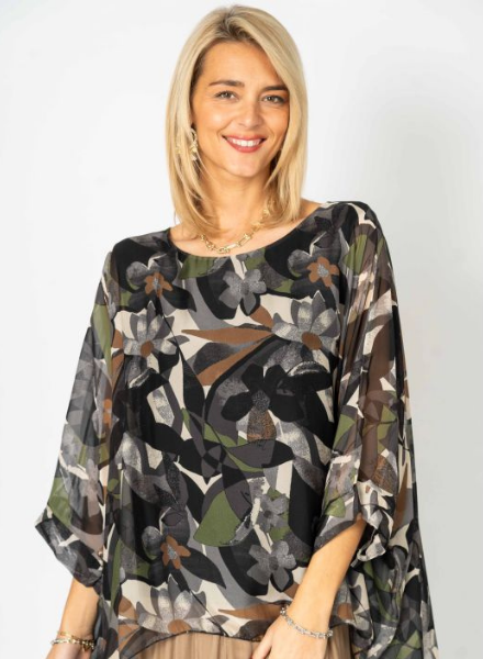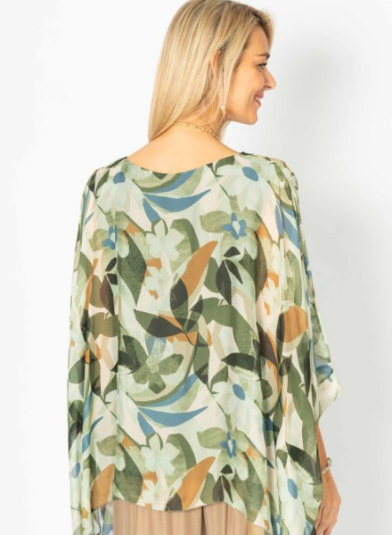 A unique print depicting geometric/simple shaped flowers and leaves with a soft, layered tissue effect on beautiful lightweight silk. The lining is a breathable cotton and elastic blend. One size fits most. Made in Italy.