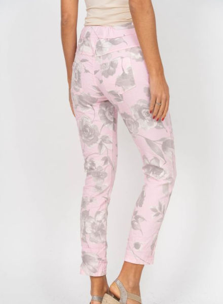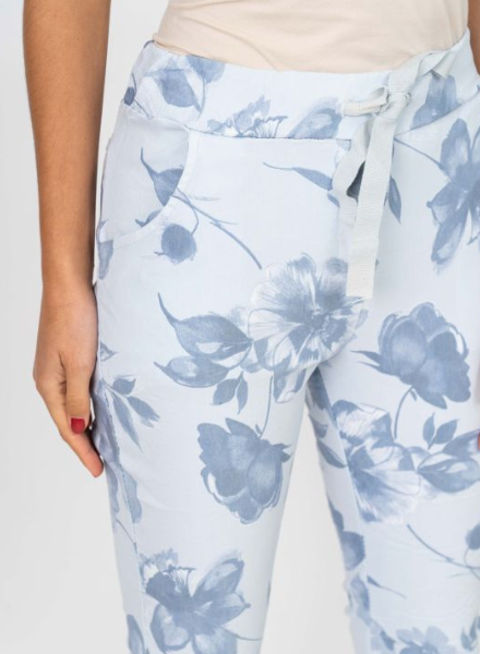 An adjustable drawstring waist makes these cute printed joggers comfortable for everyone who wears them. Available in two sizes: S/M or L/XL. A built in crinkle is perfect for travel. Made in Italy.